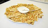 Pan fried turnovers filled with chives, mashed potatoes and spices served with chutney and yogurt