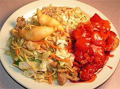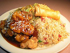 5) Egg Roll, Sesame Chicken, Chicken Chow Mein, Pork Fried Rice