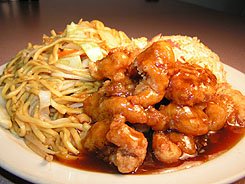 6) Fried Prawns & Sweet & Sour Chicken, Chicken Chow Mein, Pork Fried Rice